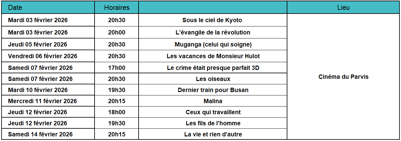 Profitez de la richesse culturelle offerte par Le Parvis ce mois-ci avec une variété de spectacles et soirées cinéma captivantes. Que vous soyez passionné de théâtre, de musique, de danse ou de film, il y en a pour tous les goûts. Découvrez ci-dessous la programmation détaillée.