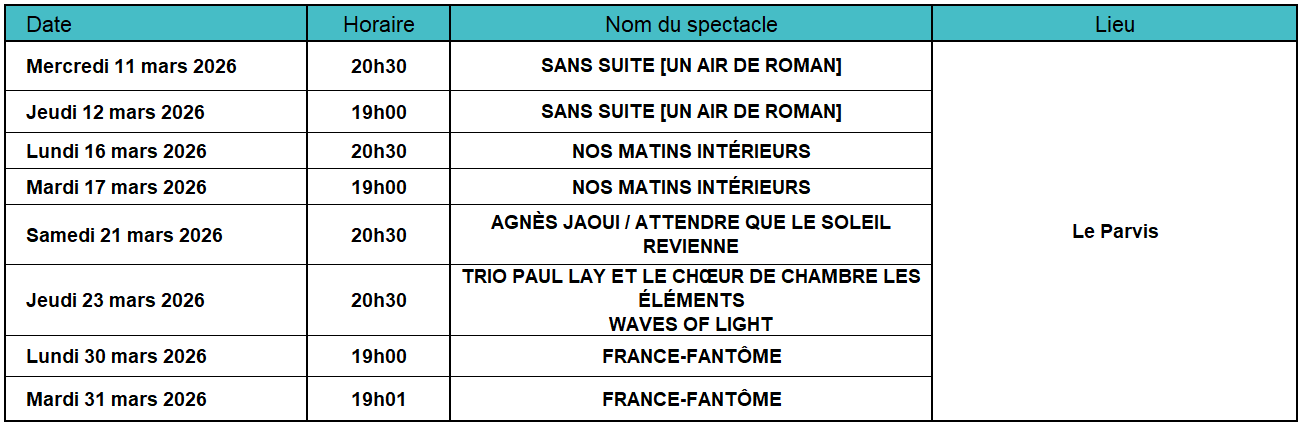 ✨ LE PARVIS - Programmation des spectacles du mois Mars✨